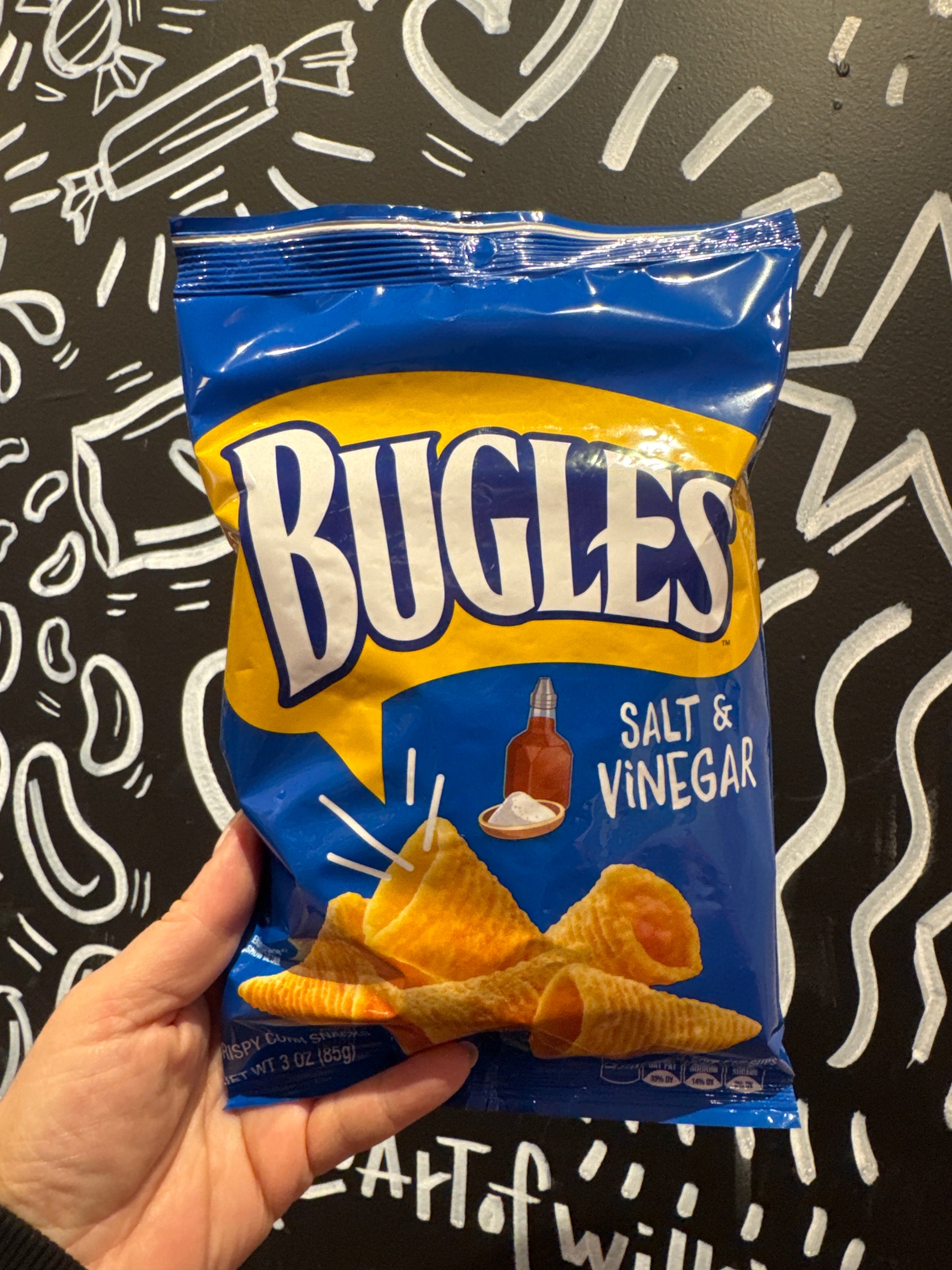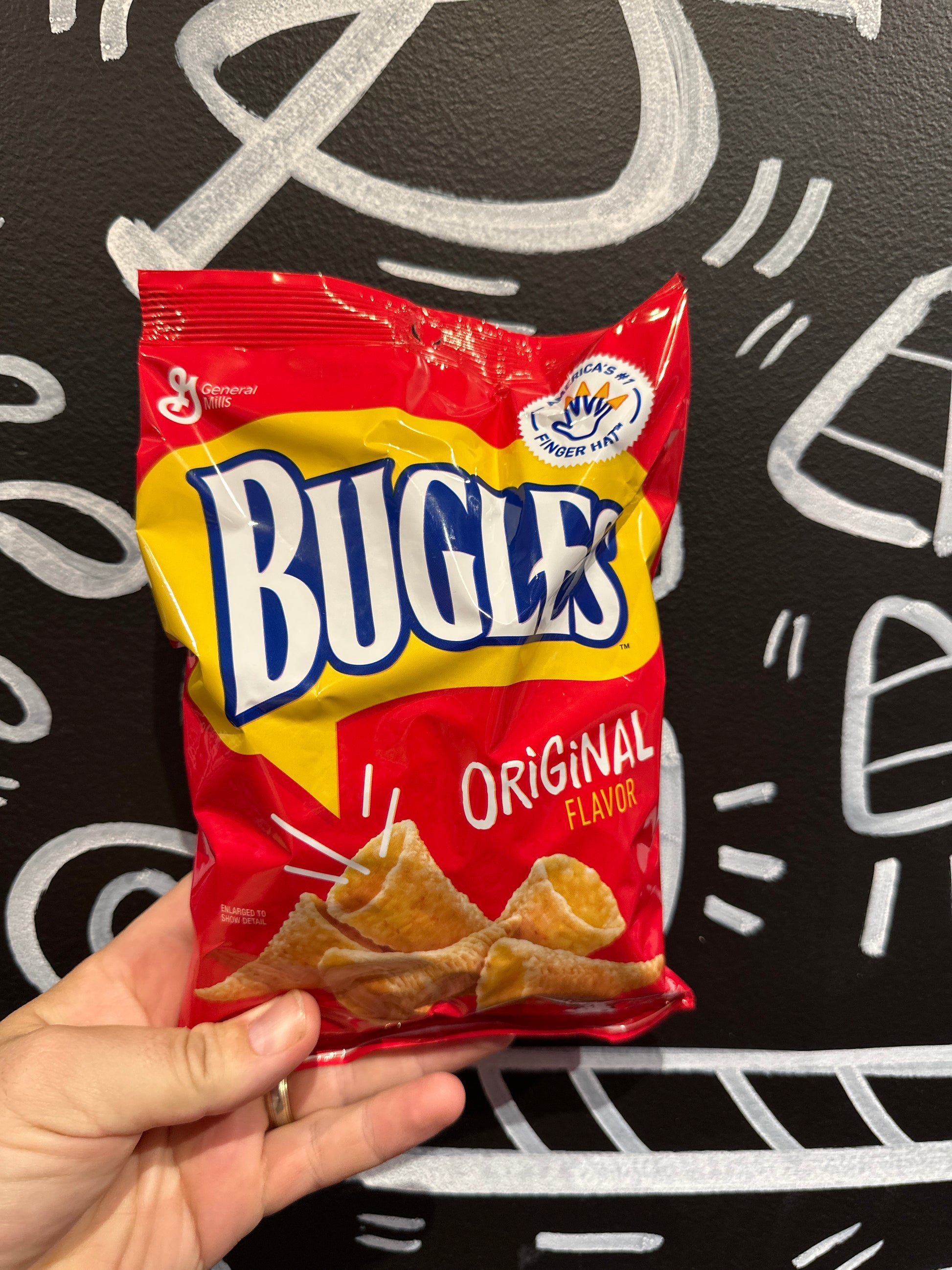 Say hello to the snack that needs no introduction… but we’ll give it one anyway! Light, airy and uniquely crunchy, Bugles are the cone-shaped corn snacks that are made to be played with.
